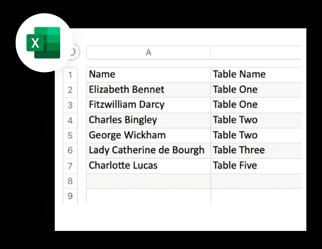 - Tölts fel egy excel fájlt. Használd sablonunkat a vendéglistád elkészítéséhez: Excel sablon letöltése